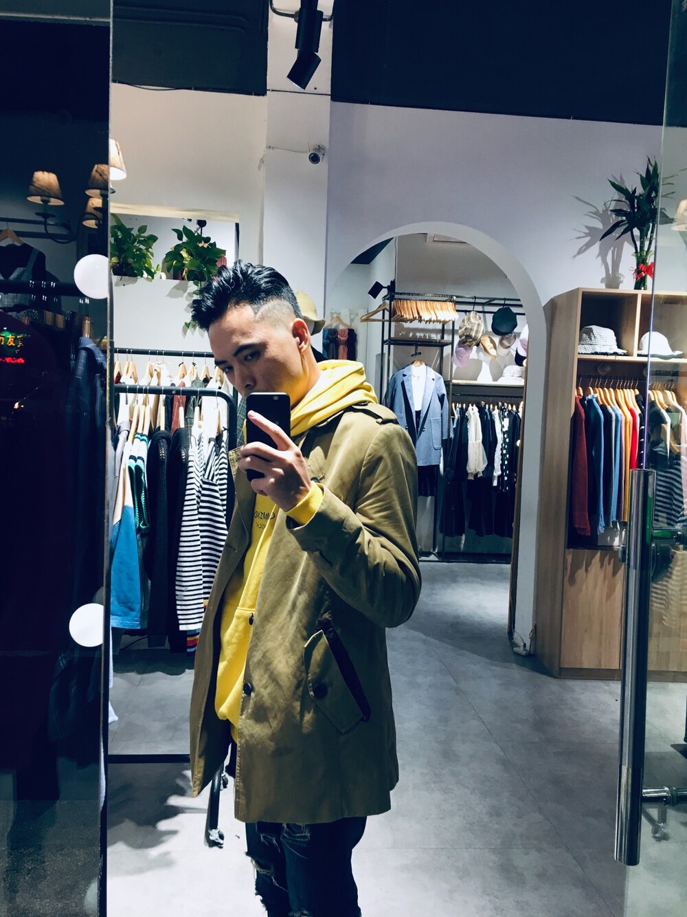 风衣加卫衣。