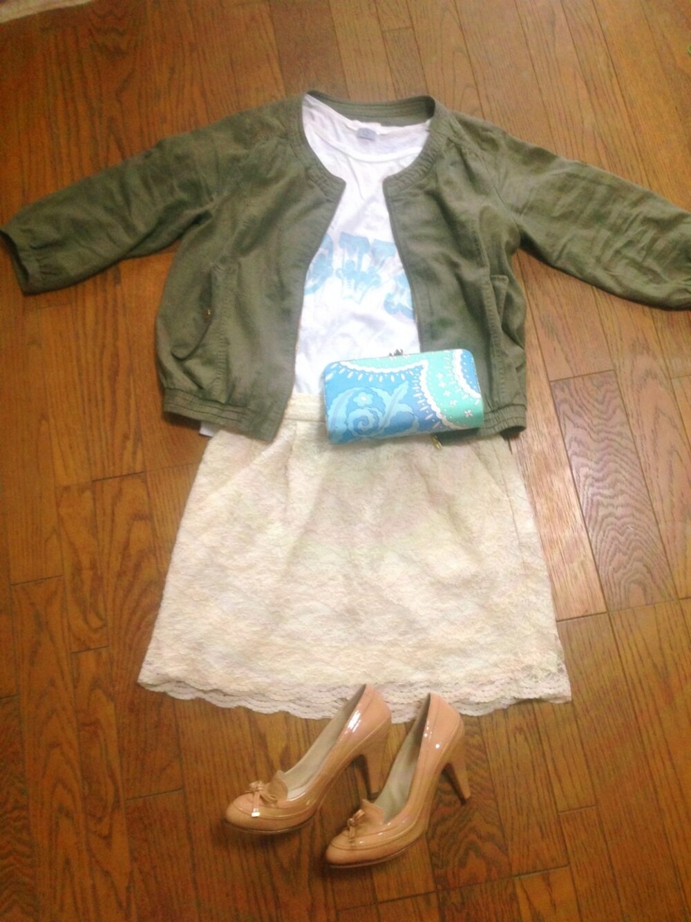 ノーカラージャケット:クレドソル Tシャツ:cher スカート:トランテアン クツ:トランテアンソン クラッチ:エミリオプッチ(ヴィンテージ) ノーカラージャケット、地元のショッピングセンターで2900円!日本製で感動の着心地ˉ̞̭(′͈∨‵͈♡)❤︎安くても探せばあるのだね〜。 クラッチバッグにはしっかりエコバッグを入れて 帰りにポン酢買うの忘れないでね!