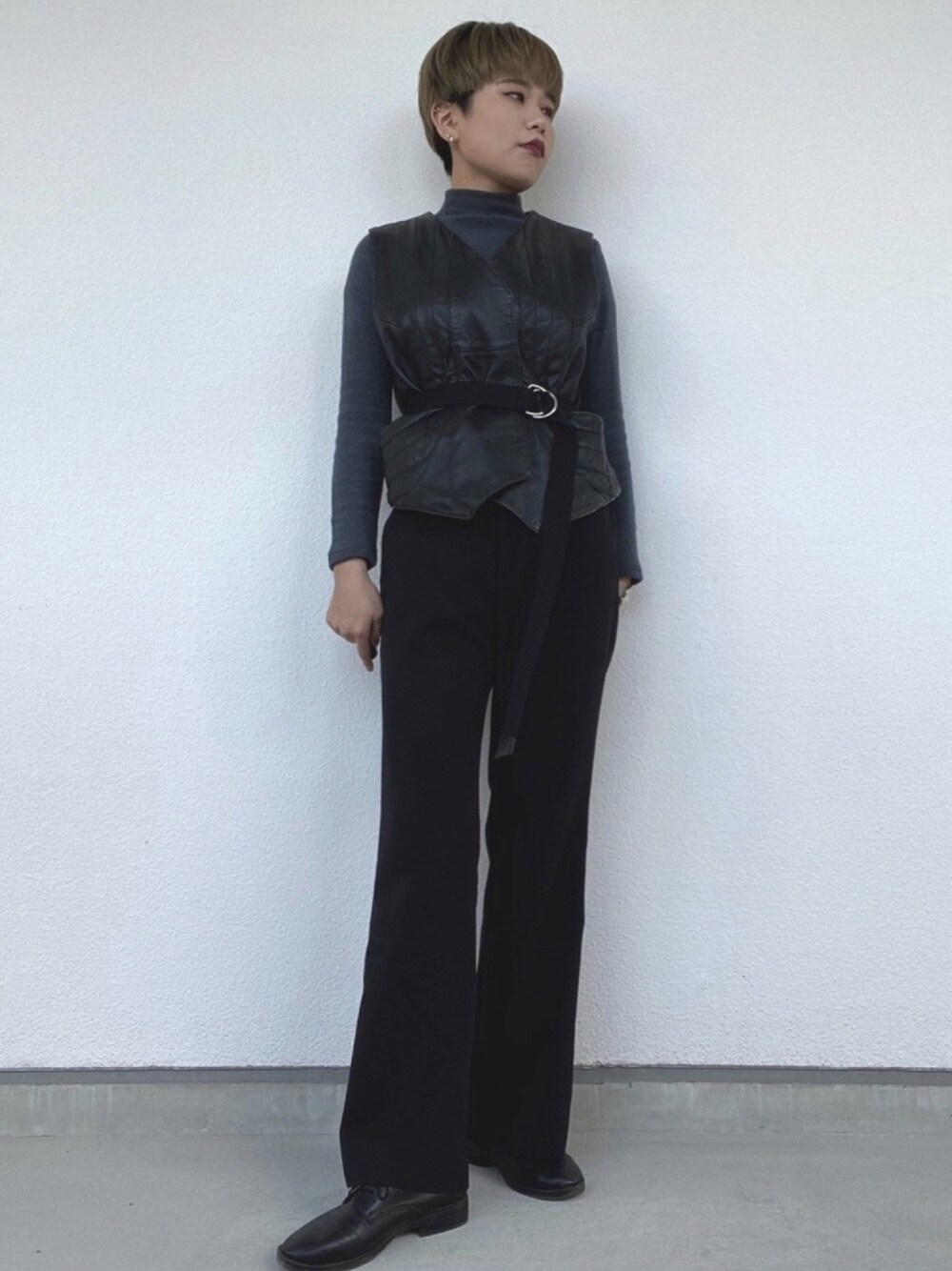 ブラック系のパンツを着用したレディースの冬コーディネートの1枚目の写真