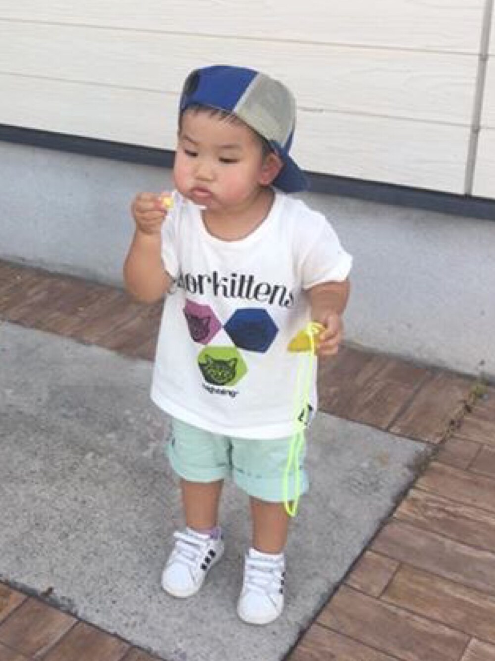 暑いですねー 最近はお手本を見せると上手に真似っこできるようになりました 息子は90cmだけど 肩幅が広いので 服のサイズ感がかなり難しい… アドバイス頂きたいです