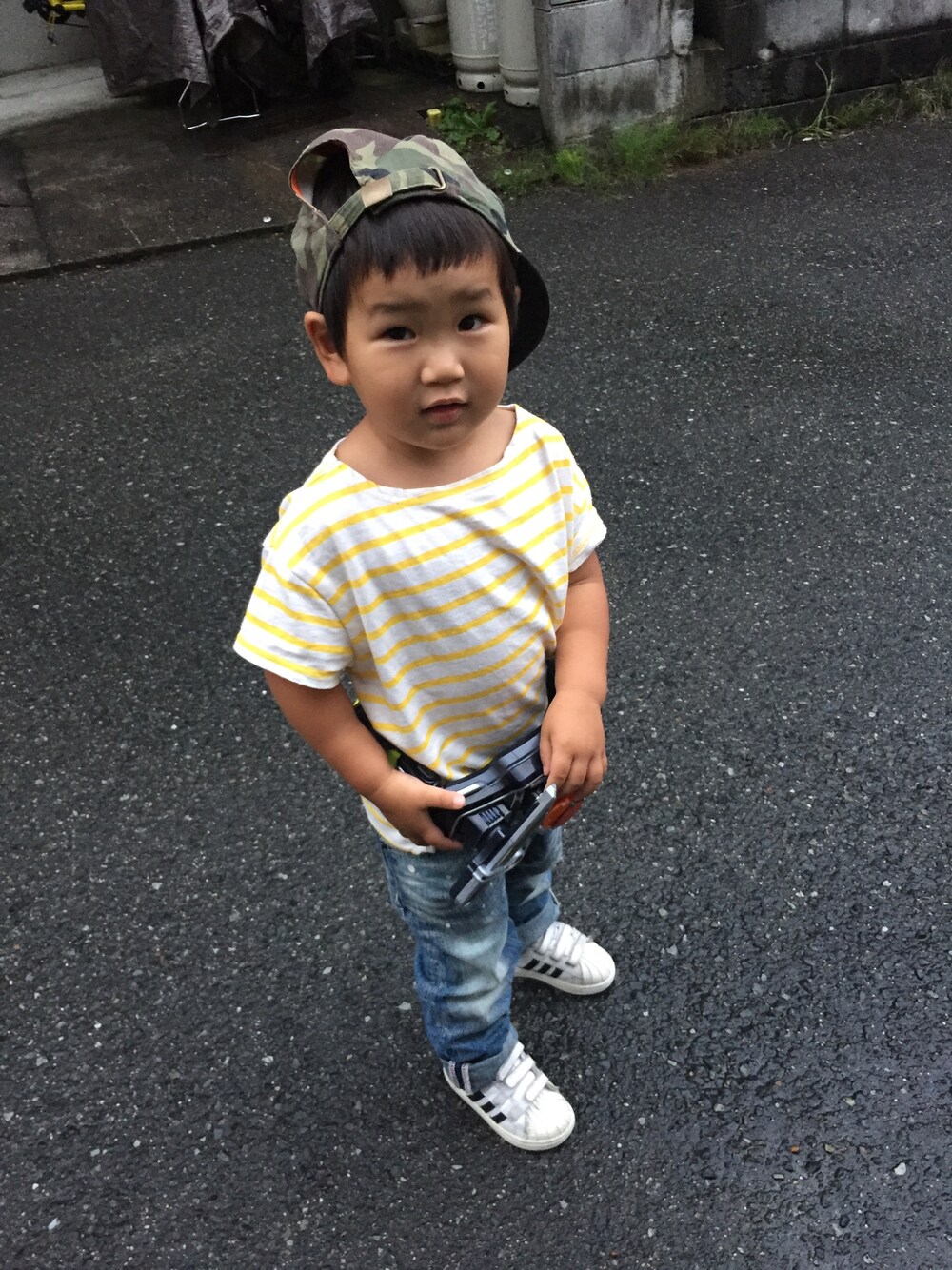 10/1 F.O KIDSで見つけた本格的なデニム 形も色もツボでした ^_^ 今日も仮面ライダーになりきって パトロール
