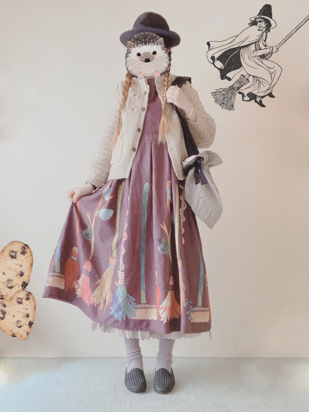 𝚌𝚘𝚘𝚛𝚍𝚒𝚗𝚊𝚝𝚎𓃹 ⠜ merlotのほうきワンピをメインに✧* クリスプの刺繍knit、あったかくて重宝してる ⸜ ♡ ⸝