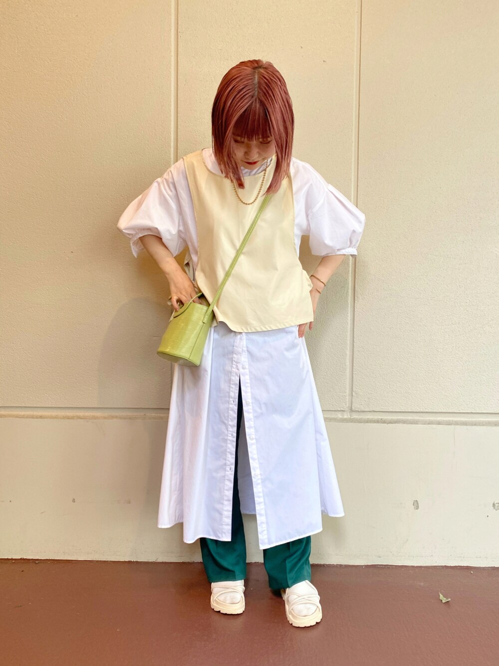 あゆのワンピース「レザーベスト付きプリーツロングワンピース」を使ったコーディネート