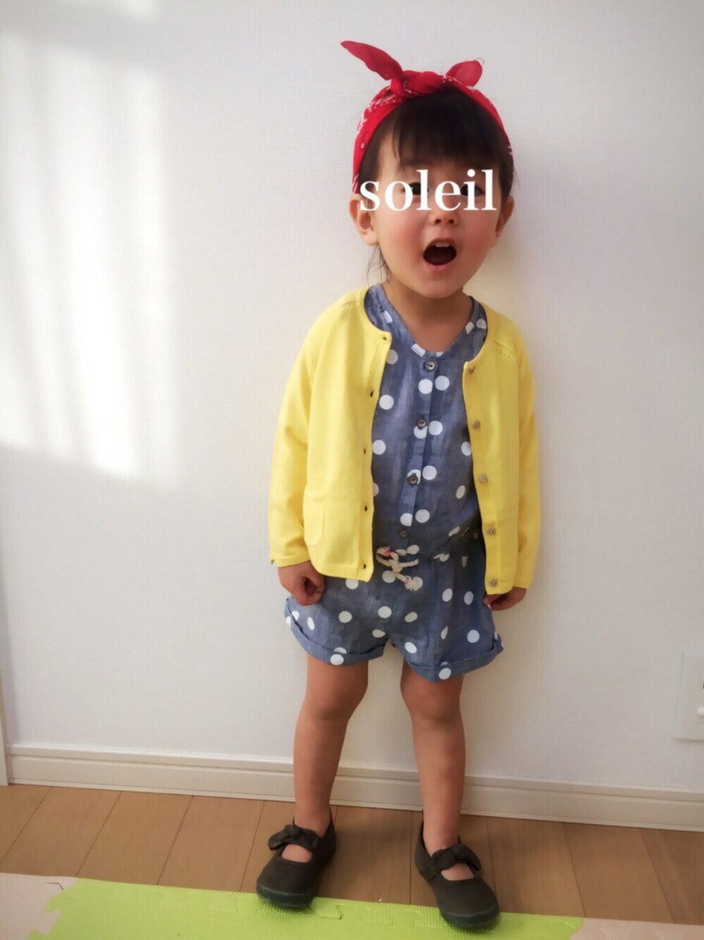 前から楽しみだったバンダーナスキダーナ祭✨ 主催者様、よろしくお願いします❤︎ バンダナ完全拒否だった娘を乗りに乗せて乗せまくって撮影(^_^;) めっちゃ初夏のコーデだけど…私はどれだけ夏を待ちわびているのだろうか。 このオールインワン、めちゃめちゃ可愛いから早く着せたーい!!