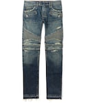 SHUのデニムパンツ「Balmain Slim-Fit Distressed Stretch-Denim Biker Jeans」を使ったコーディネート