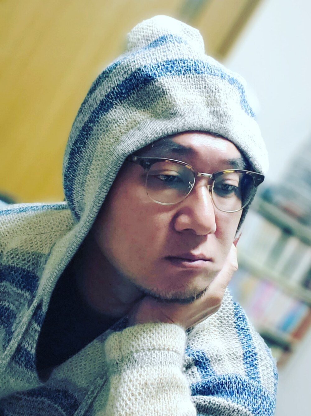 こうも寒いと、部屋でもフードを被りがちです🎵 ちなみに外用と部屋用でメガネを使い分けてます🎵