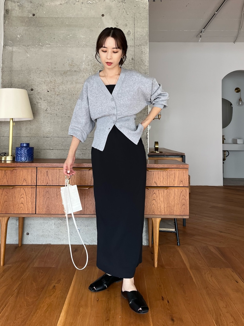 monotone code ♡ ウエストマークされたカーディガンでスタイルアップになります^ ^ ig @shio_lemage
