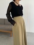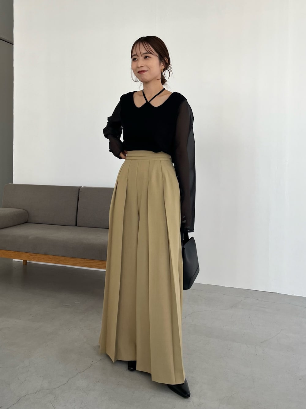 ウェーブネックと袖シアーの抜け感あるニットに ゆるっとプリーツパンツを合わせたコーデ。 スカート見えするパンツはシルエットカバーしてくれて、動きがあり目を引くので、 シンプルなトップスでもこなれ感出してくれます^ ^ ig @shio_lemage