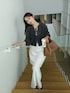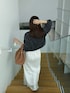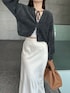 louere × nanaco のシャギーカーディガン♡ サテンスカートで上品な印象に。