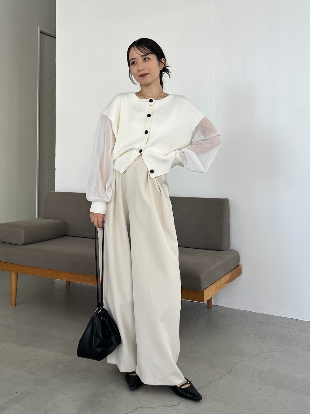 春に着たいホワイトコーデ。 カーディガンの袖シアーが抜け感あるポイントです^ ^