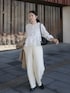 春ブラウスを主役にホワイトコーデ。 カーブパンツで大人な印象に◎
