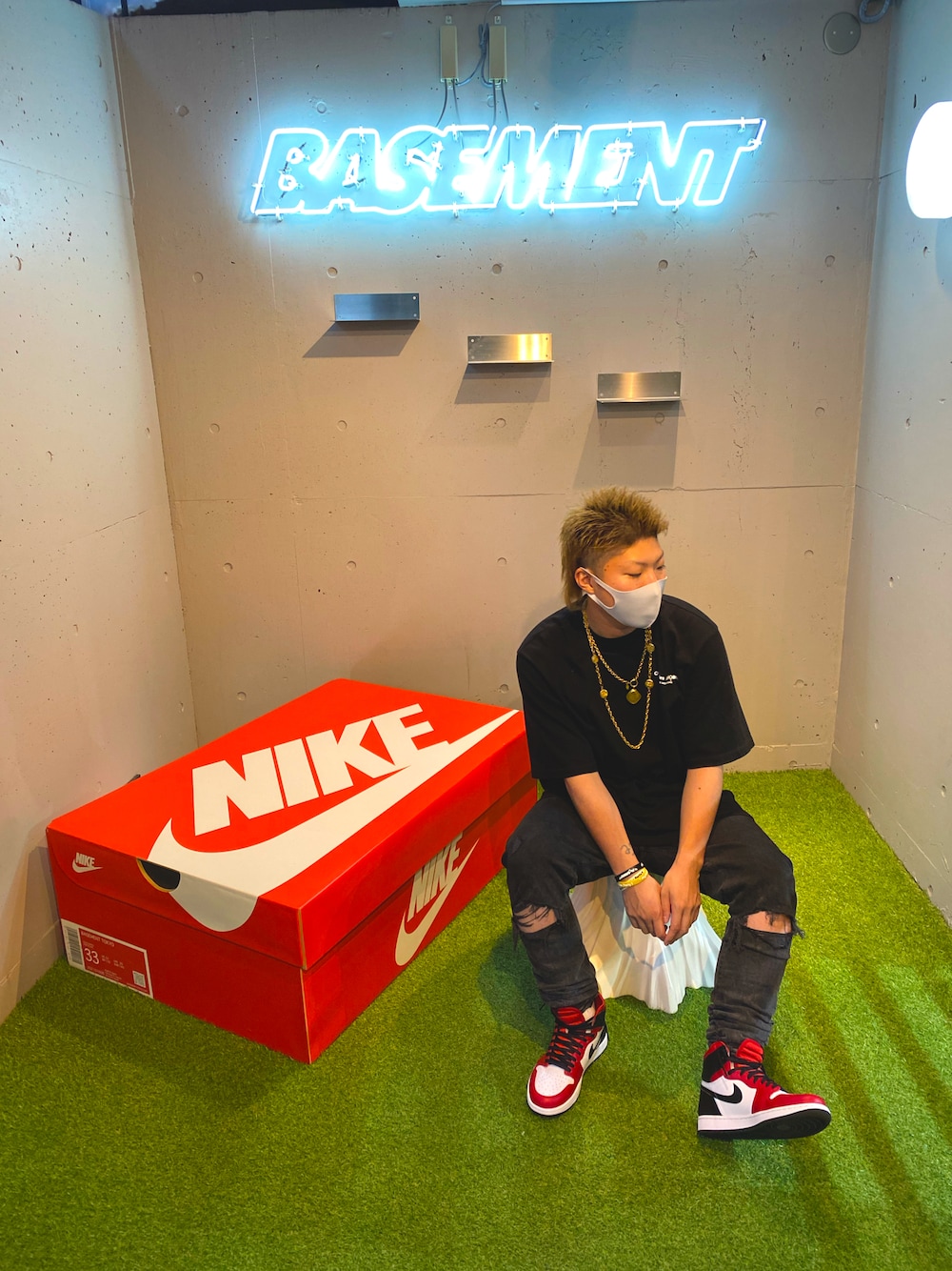 本日も新しいスニーカーを履いて スニーカー中心のコーデ AJ1はスキニーデニムパンツでさらに 腰履きして、Tシャツはオーバーサイズの スタイルがなんだかんだ一番しっくりくる