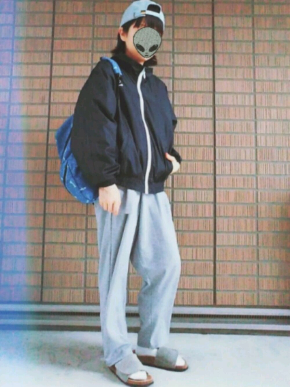 画質荒くてすみません、精進します まだ肌寒い季節 風の強い日でも風を通さないナイロンジャケットが重宝しますね キャップも飛ばない安心スタイル