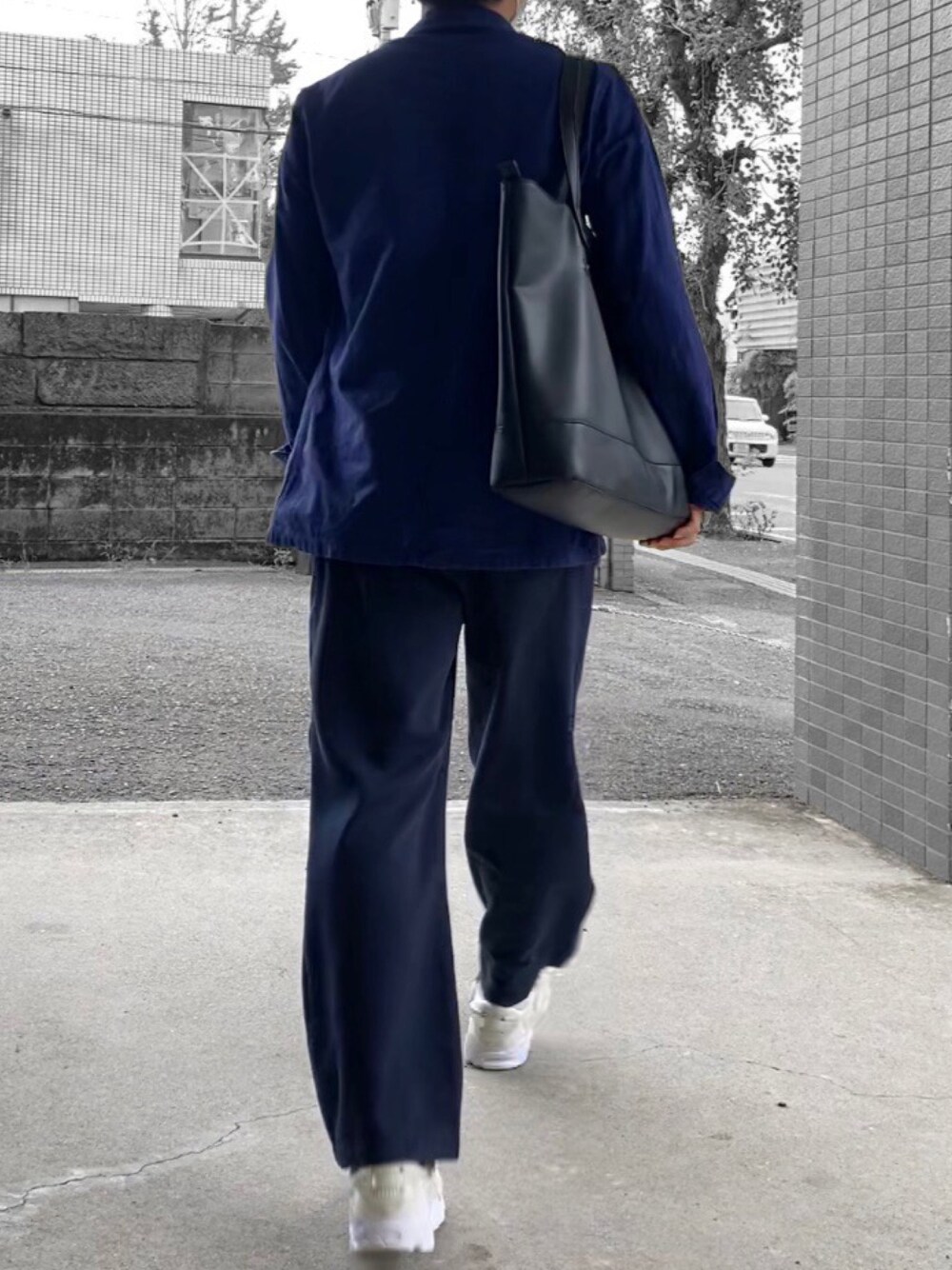 上下古着のネイビーコーデです🦋 . . 足元は白で引き締めました。