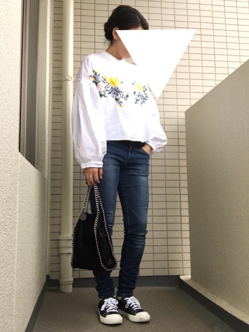 刺繍ブラウスをシンプルに♡ 今日も見つけいただき、ありがとうございます😊