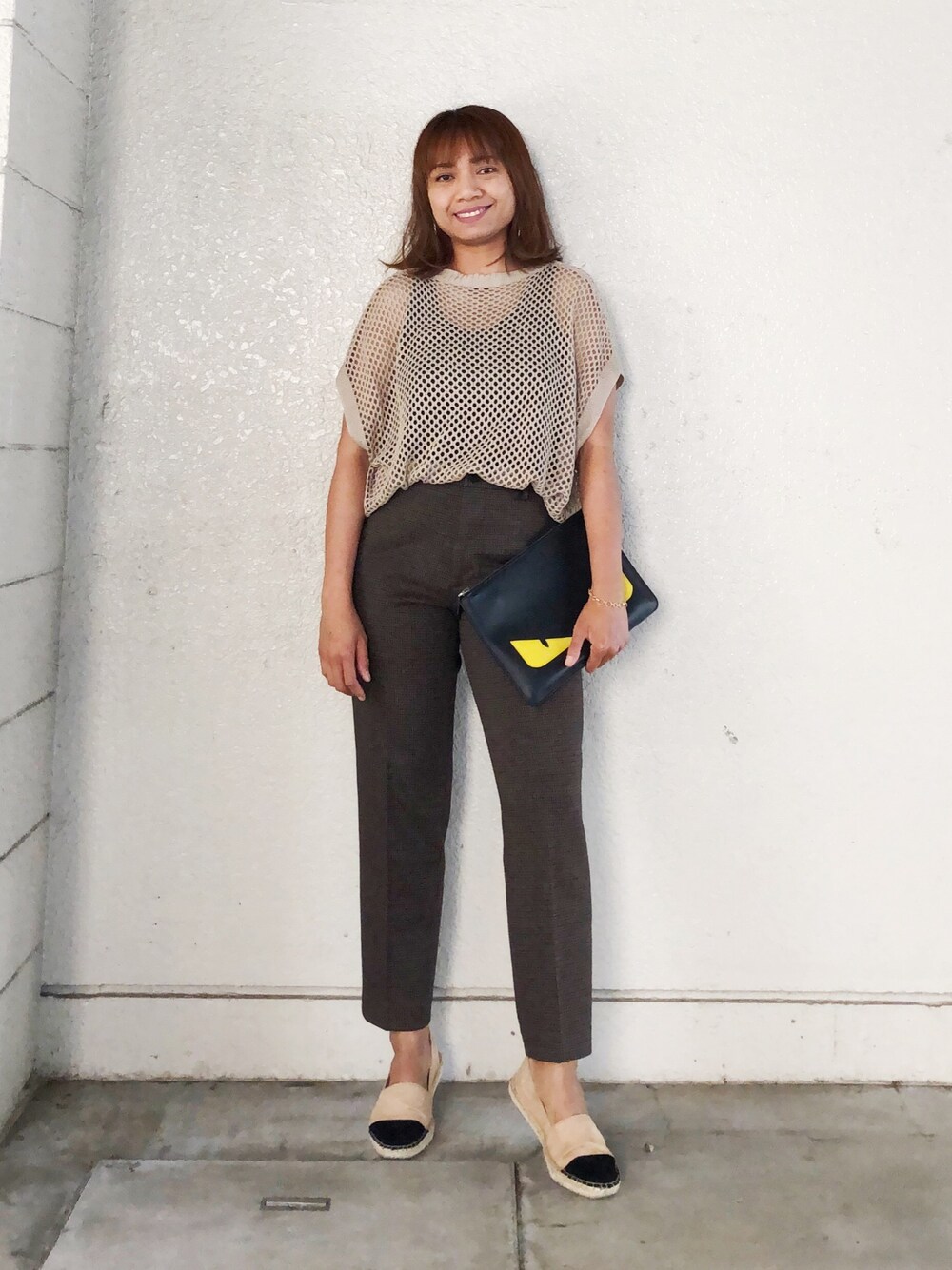 秋夏アイテムミックスコーデ ちょっと外にデザインの打ち合わせです。