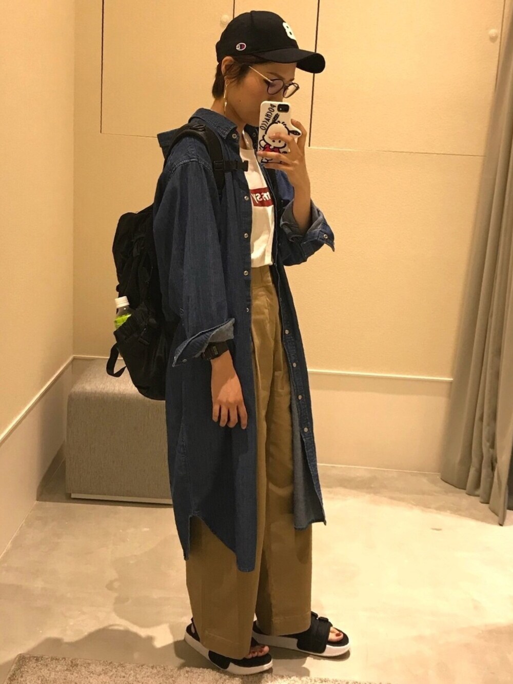 最近ワイドパンツとキャップ率高いな。 FRAY I.DとDickiesコラボのワイドパンツはウエストが細くて苦しい時があるので今日はゆったり着られるユニクロのワイドパンツで映画鑑賞。