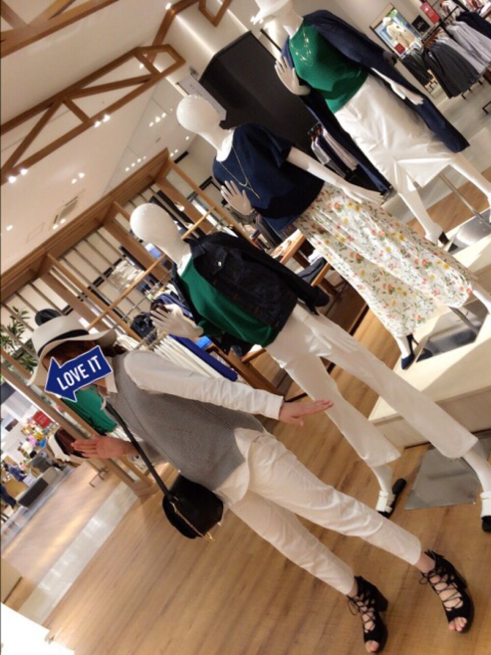 ブリスポイントのマネキンはいつも妙なポーズで佇んでいるのが気になって紛れてみた。 本当はネイビーのトレンチ着てたけど暑くて脱いじゃってます。