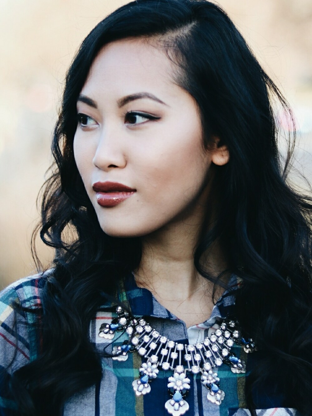 Add a statement necklace to a casual shirt to amp up your style