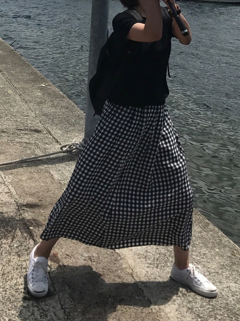 ias_on_10のスカート「リンクルエアガラフレアスカート 741108」を使ったコーディネート