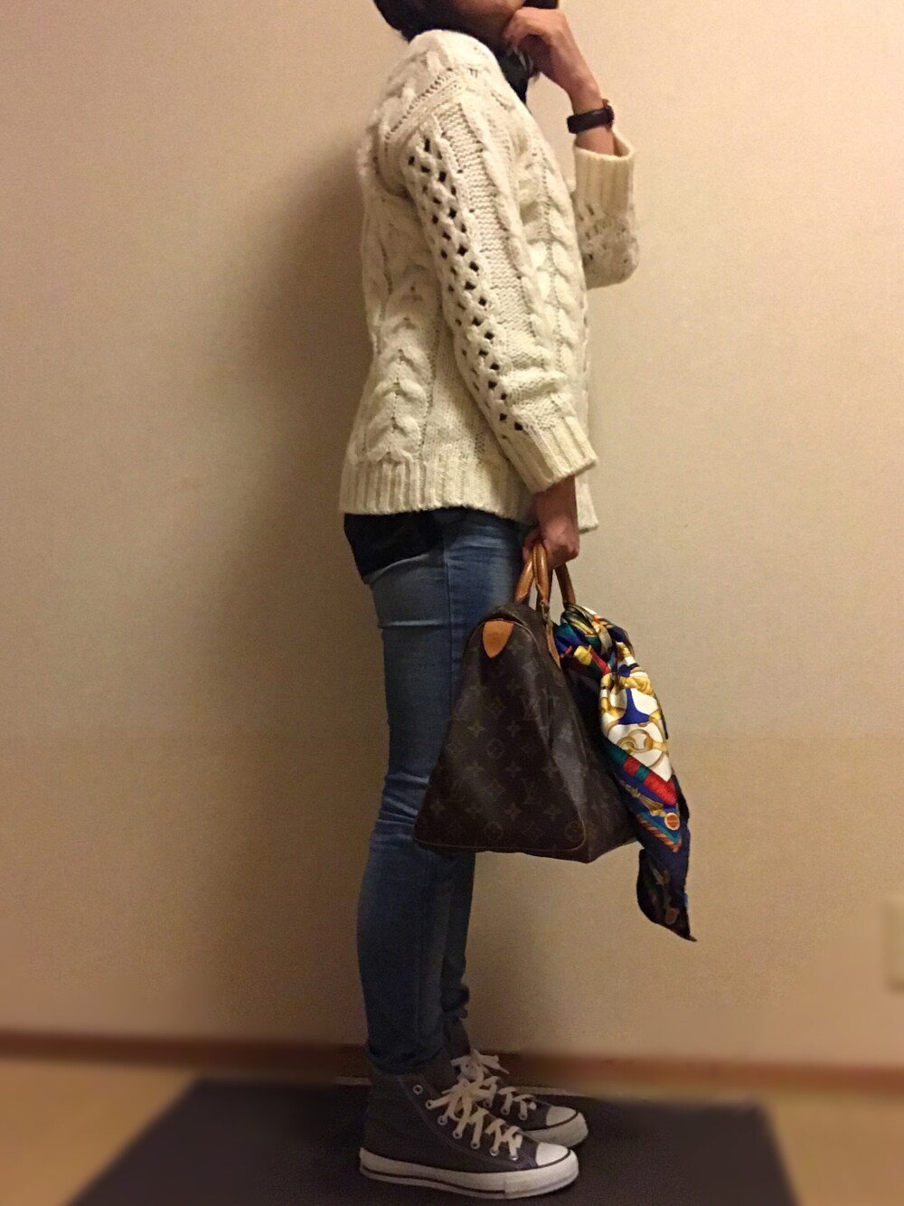 今日は休日❤️ 平日は仕事のために履けないジーンズで👖 白のショートのセーターに黒シャツをチラ見せで (*ノωノ)キャッ