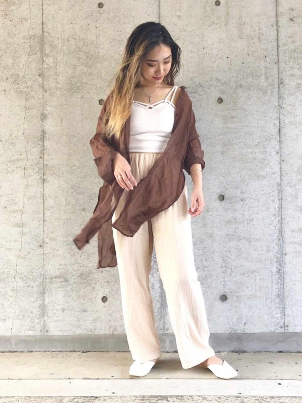 閲覧いただきありがとうございます🙏 良かったらインスタのフォローございますお願いします😖♡ ▶︎▷@sona_arholiday ベージュ×ブラウンは安定ですね🤫❣️ ラクチンなので おうちコーデにもおすすめです❤︎‼︎