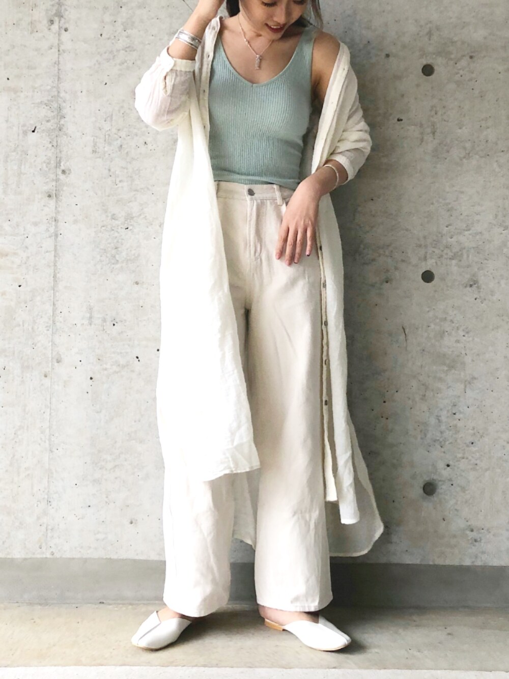 閲覧いただきありがとうございます🙏 よかったらインスタのフォローもお願いします😖♡ ▶︎▷@sona_arholiday ハマっているホワイトコーデに差し色でミントグリーン💚