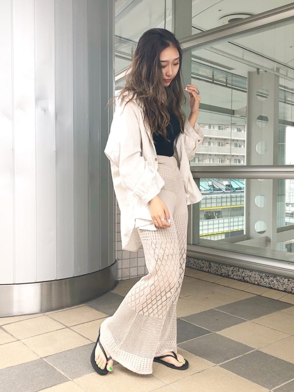 閲覧いただきありがとうございます🙏 ▶︎▷@sona_arholiday ラフだけど大人っぽいベージュコーデ❣️ クロシェパンツが楽ちんで可愛いくておすすめ😳
