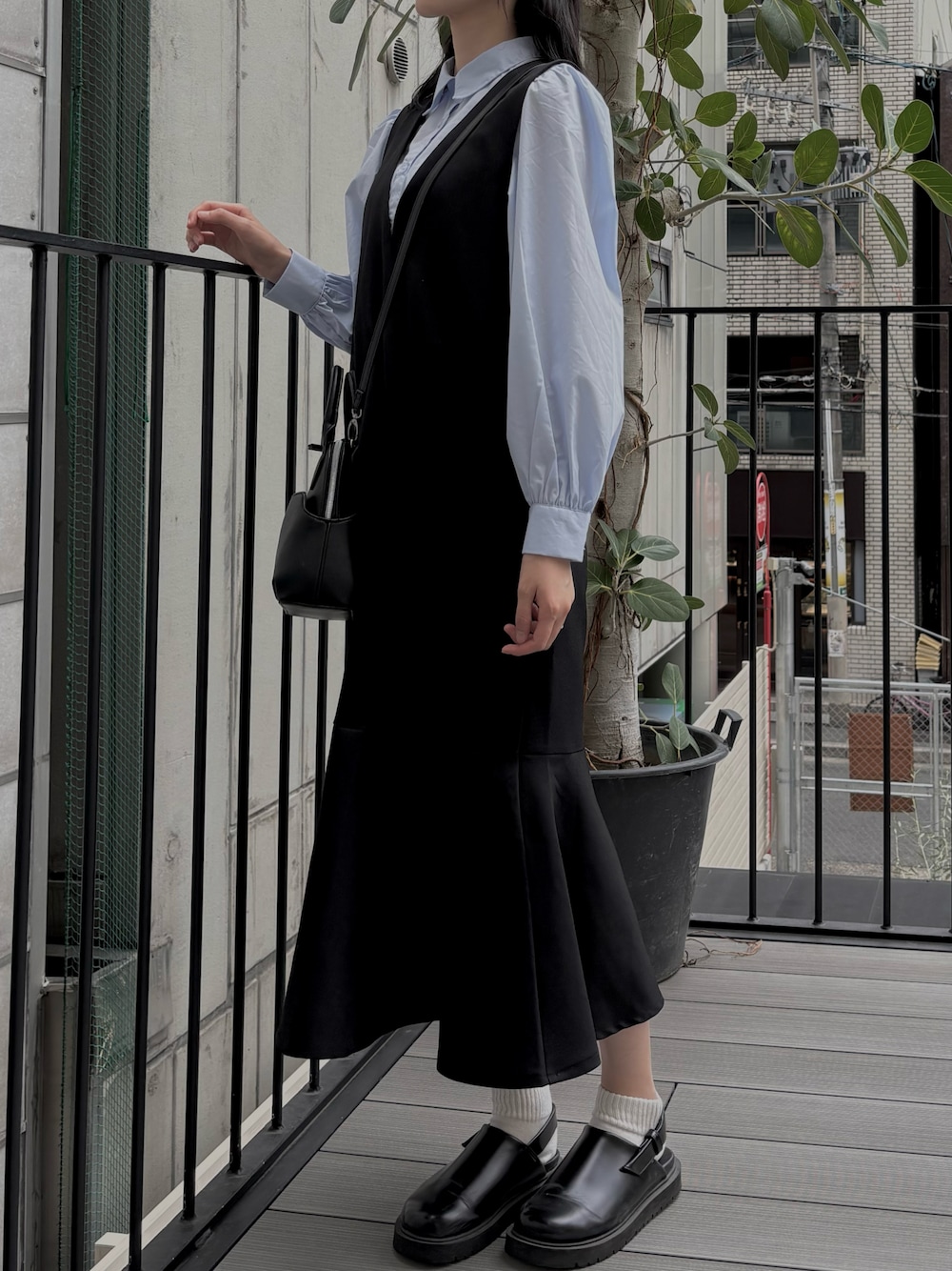 シンプルだけどちゃんと可愛い! シャツ×ジャンスカコーデ