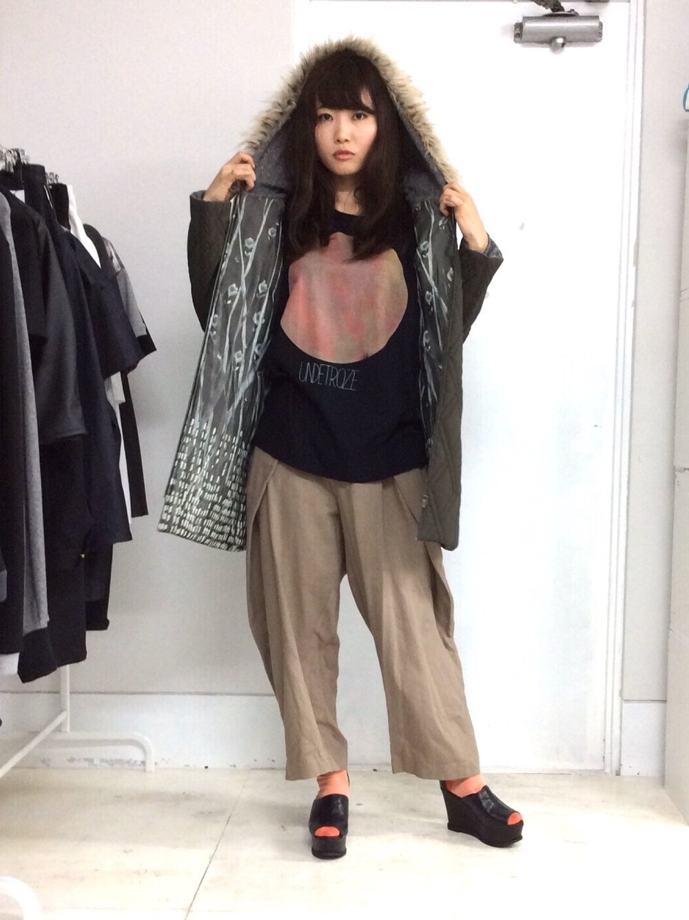 shikiのコートは細身のシルエットながら中綿で暖かいです。 リバーシブルで着ることができます!