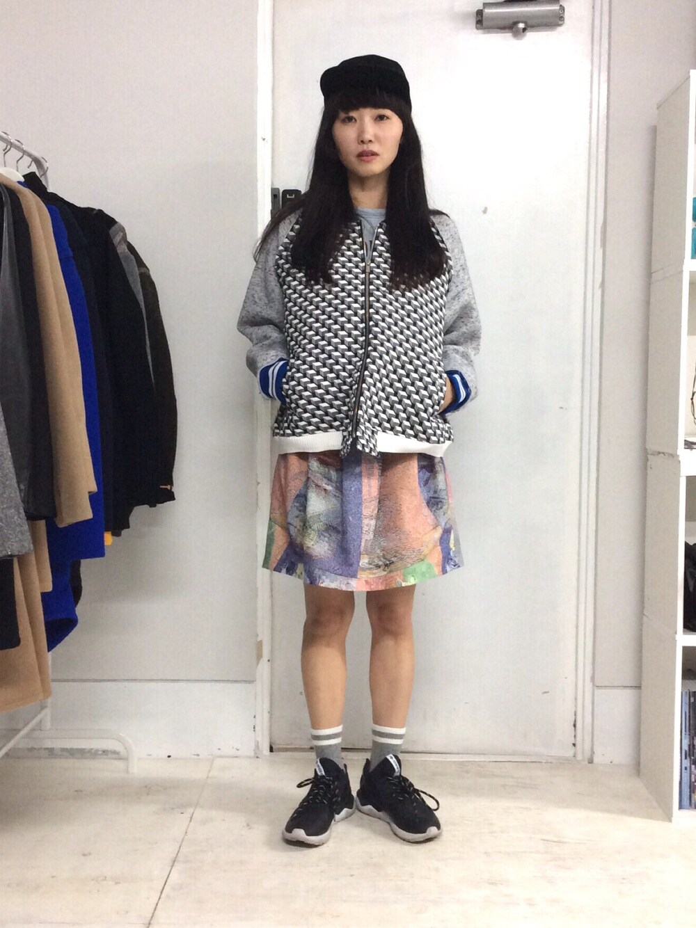 bodysong.の上下で合わせたストリートなレディーススタイル ジャガード織りのスカートは春にこそオススメです。