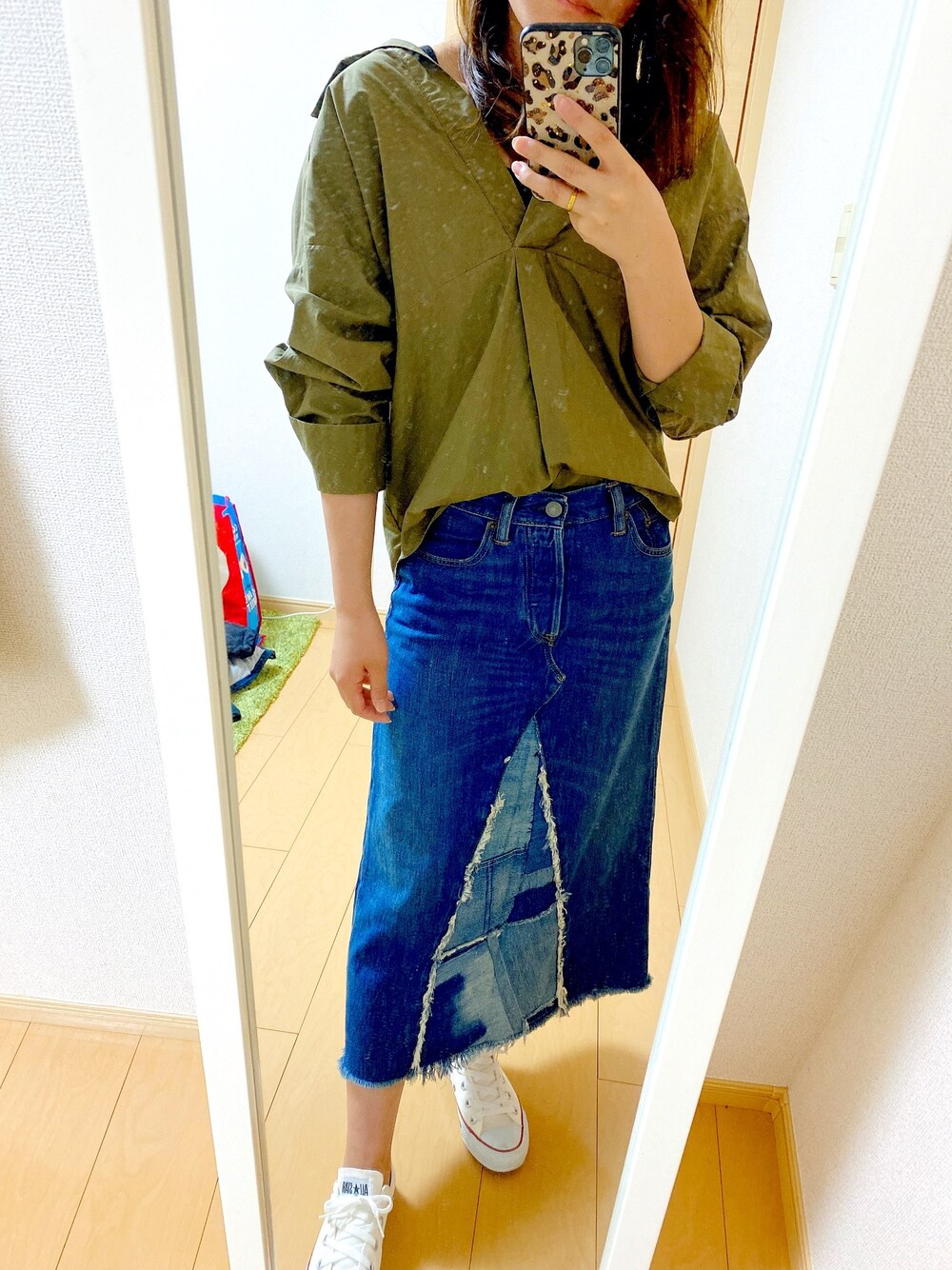 カジュアルコーデ☺︎ お気に入りのデニムスカート♡ シャツも形が可愛くてお気に入り🌟