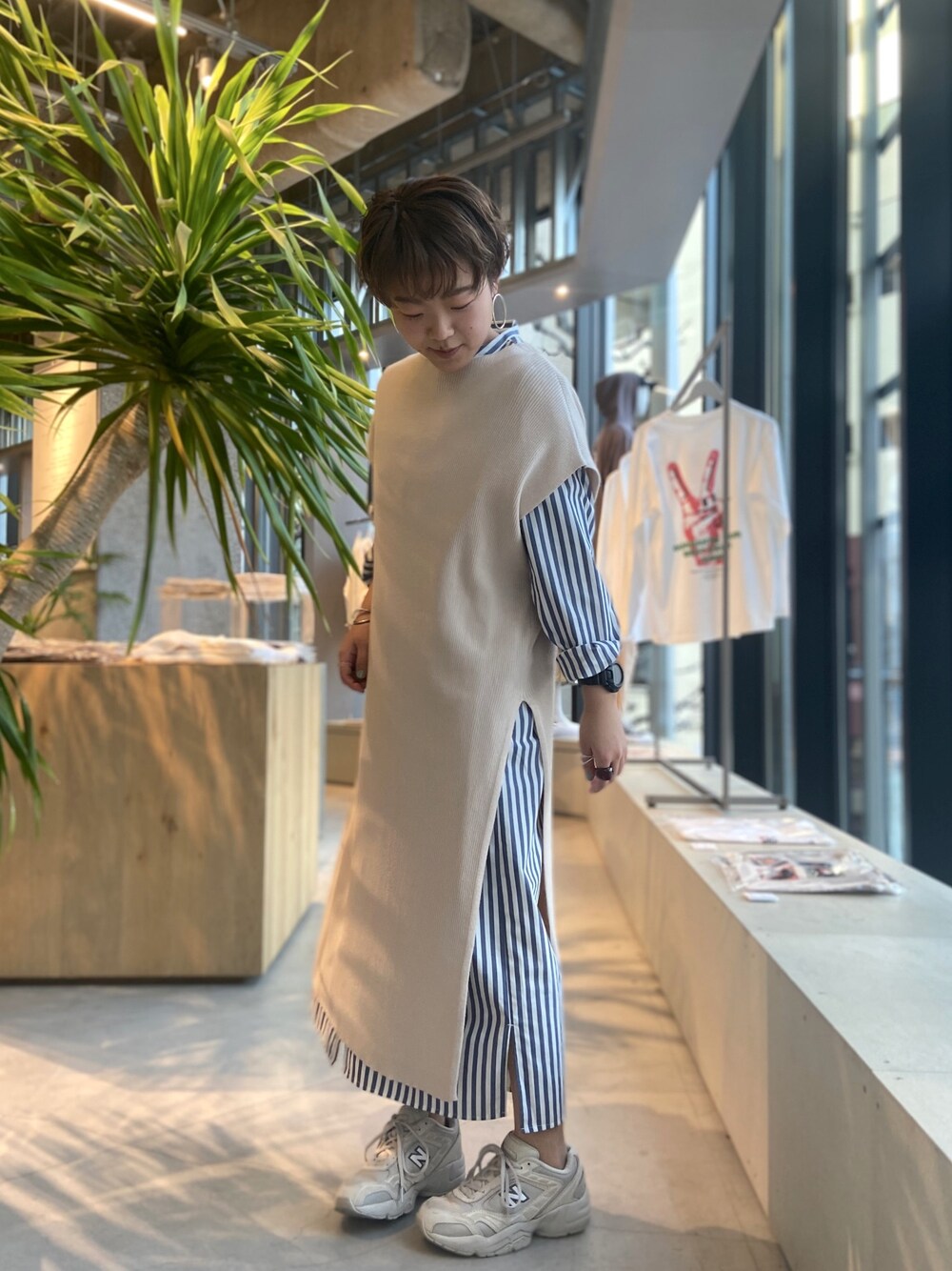 ワンピースのレイヤードスタイル👗 スリットワンピはリブなので、ストレスレスに着こなせます!