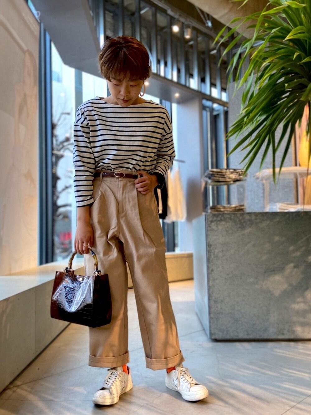 ボーダートップスはきれい目にもカジュアルにも使えてまさにヘビロテアイテムですよね🥳 8部袖になっているため、着痩せ効果もあり、すっきりご利用頂けます😉❤️