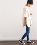 オトのTシャツ/カットソー「アシンメトリービッグシルエットミドル丈無地クルーネックTシャツ(半袖)」を使ったコーディネート