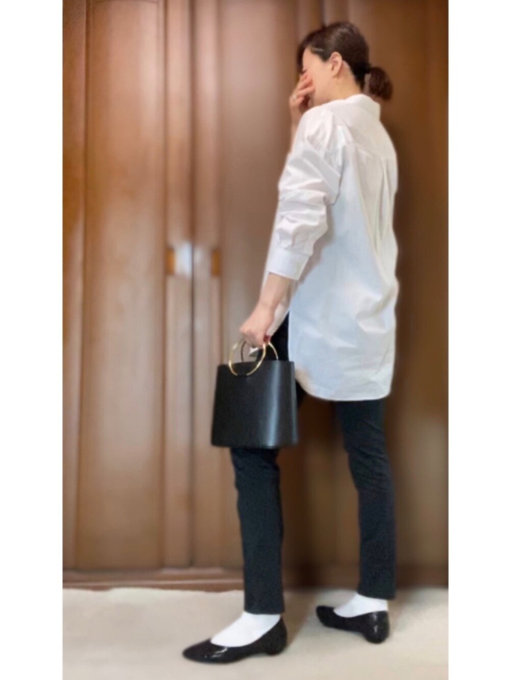 ご覧いただきありがとうございます😊 モノトーンコーデ💕 落ち着きます。 UNIQLOオーバーサイズシャツ、気になるふとももをしっかり隠してくれる丈で優秀!わたしは165cmでMサイズです。 見えませんけれど、アクセは存在感のあるリングを1つして、ピアスは控えめなのものをチョイスしました。
