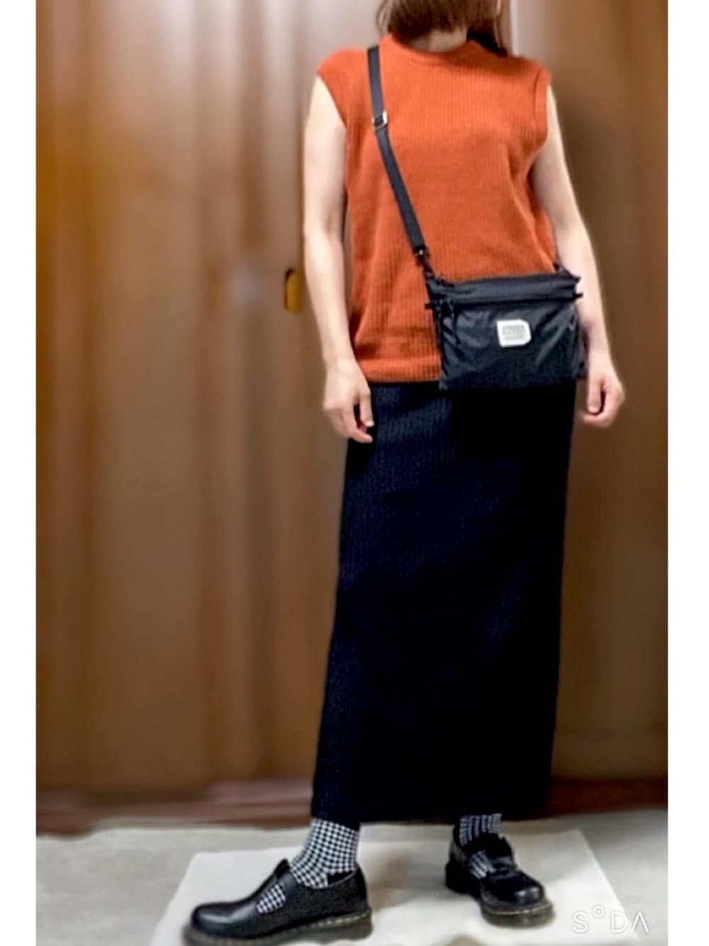 ご覧いただきありがとうございます😊 アクションありがとうございます🙌 とても嬉しいです😆 UNIQLOメンズのオーバーサイズベストのオレンジ色(Sサイズ)で秋色〜 靴下はギンガムチェック。
