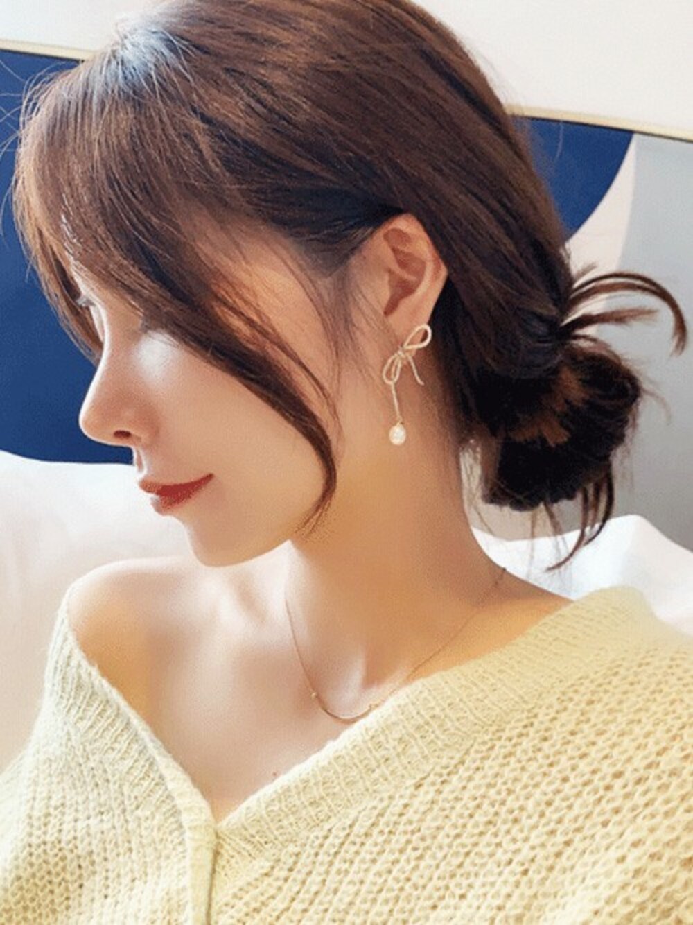 sonnamoodのピアス(両耳用)「#リボン #パール #ロングドロップ #ピアス #RIBBON #PEARL #LONG DROP #PIERCING」を使ったコーディネート