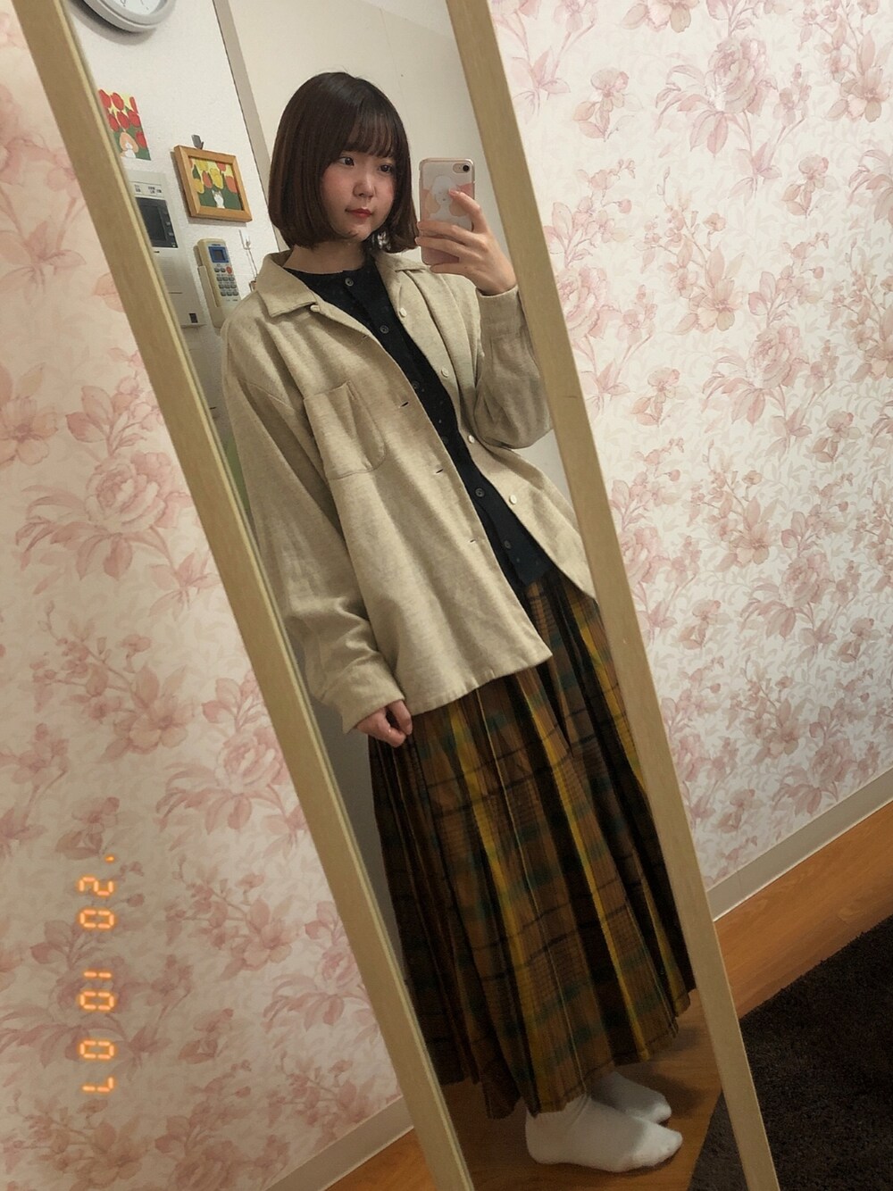 秋色のスカートがお気に入りです 早くこれくらい着込んでも 丁度いいくらいの気温に なってほしいです 。