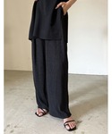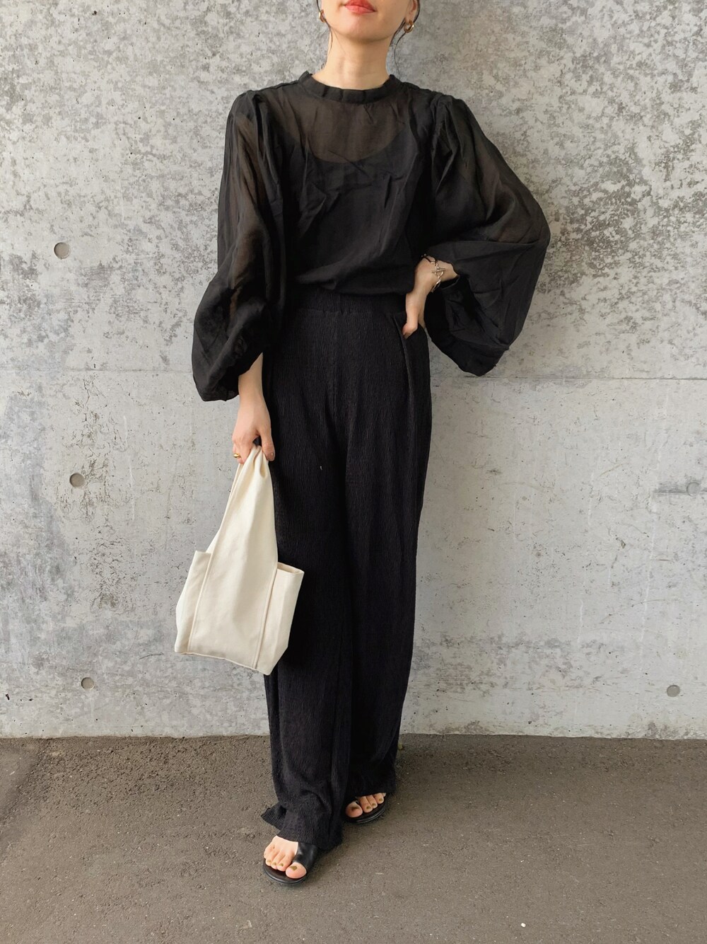 . 2WAYボリュームスリーブシアーブラウス color black size M & 楊柳プリーツウエストタック ストレートパンツ color black size M @reedit_official @yukiko_kh ポワン袖のシアーブラウス♡ インして着る方がすき✌️ 万能すぎるプリーツパンツは ウエストがゴムでめちゃんこ楽ちん♡