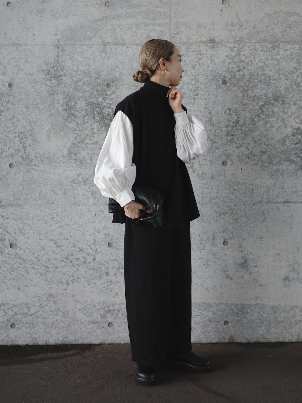 インナーをボリュームスリーブブラウスで🤍 モノトーン合わせが大人ぽく 仕上がるよん🥰 インスタ2323son よろしくお願い致します🤲