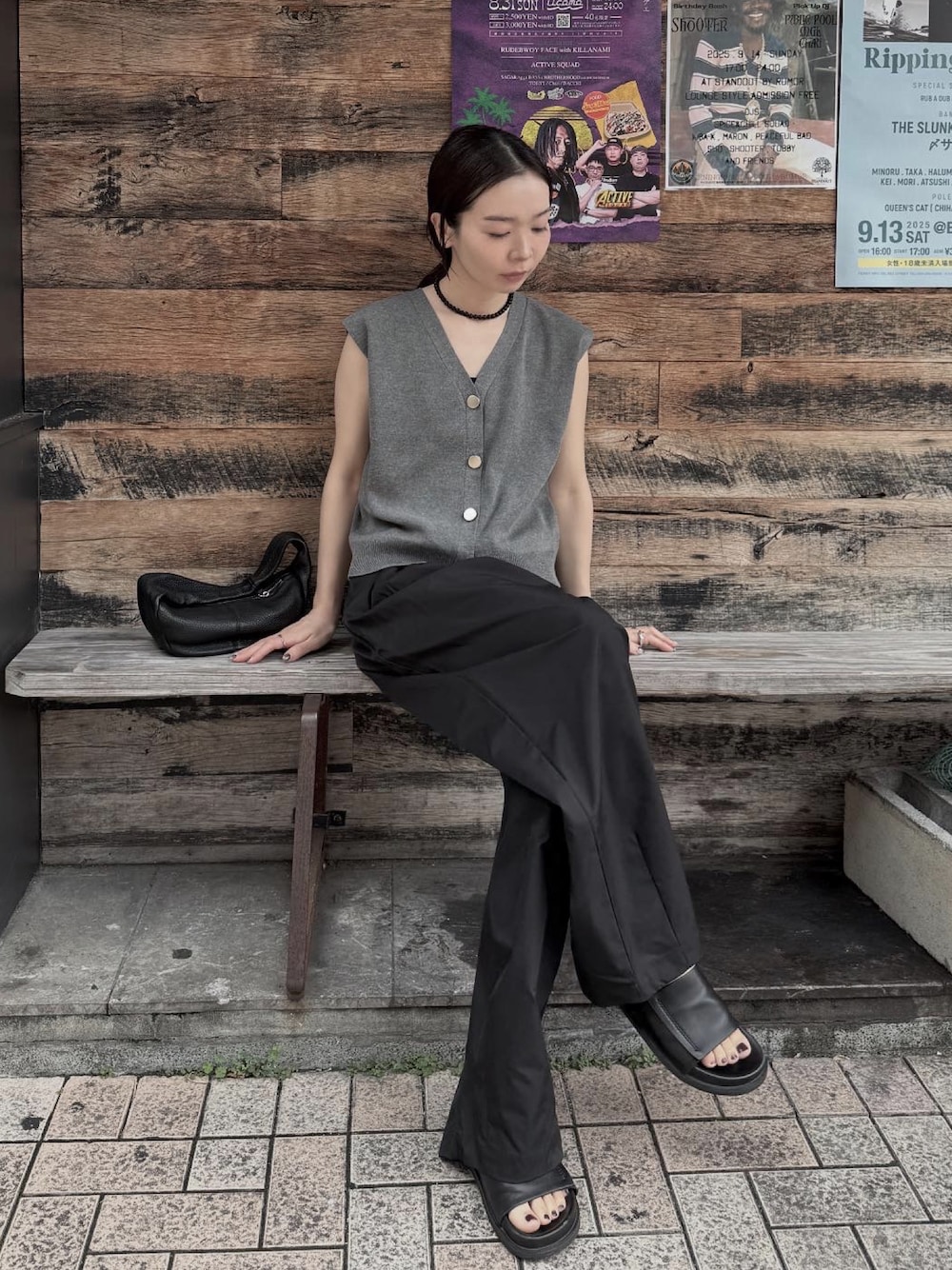 sonのベスト「ゴールド釦ボクシーニットベスト」を使ったコーディネート
