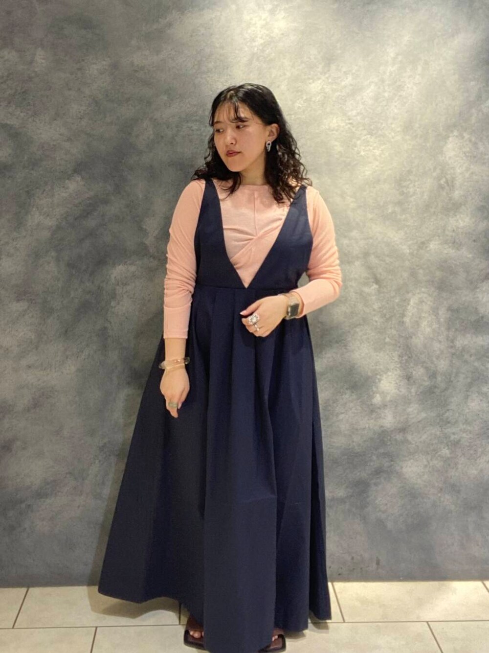 大胆なVカットがおしゃれなジャンパースカートです👌💕 秋シーズンのお洋服ですが、肌触りもさらさらしていて今からの即戦力として長く使っていただけます🙆♀️ ロゴTと合わせるとデコルテ周りが華やかになります〜!