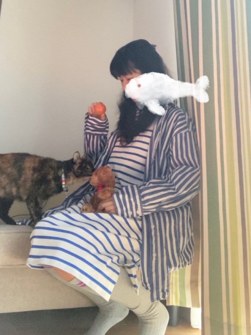何かグダグダな写真ですみません💦 例のマンガのシーン「キャッチボールが続かない 方に100ドル」をやろうと(知らない方スミマセン)、 小窓のキャラ風に髪を前で繋げたものの、 ネコさんはゴロゴロピタピタくっつくし、 服はうまく撮れないし、髪はボサボサだし… で、ボツろうかと思ったのですが、ネコさんが 自然体で可愛い?のでコッソリ載せることにしました 自分で言うのも何ですが、ネコさんはわたしが 大好きみたいで、大体いつもくっついてくる わたしが嫁に行ったときは、ご飯も食べず わたしのクローゼットに閉じこもって、 3.2キロあった体重が2.6キロに😭 今は戻りましたけどね 最近は寝てるわたしのアホ毛でシャドー ボクシングしたり、音もなく足下に近づき、 当たったらクレームをつける当たり屋ごっこを したり、毎日新たな遊びを編み出しておられます さて…wearも今月末で1年だな〜 1人で発信するイメージだったけど、思いがけず イイネやコメントいただけたりして、 びっくりするほど嬉しかった😂 これからも頑張りすぎない程度に続けたいです