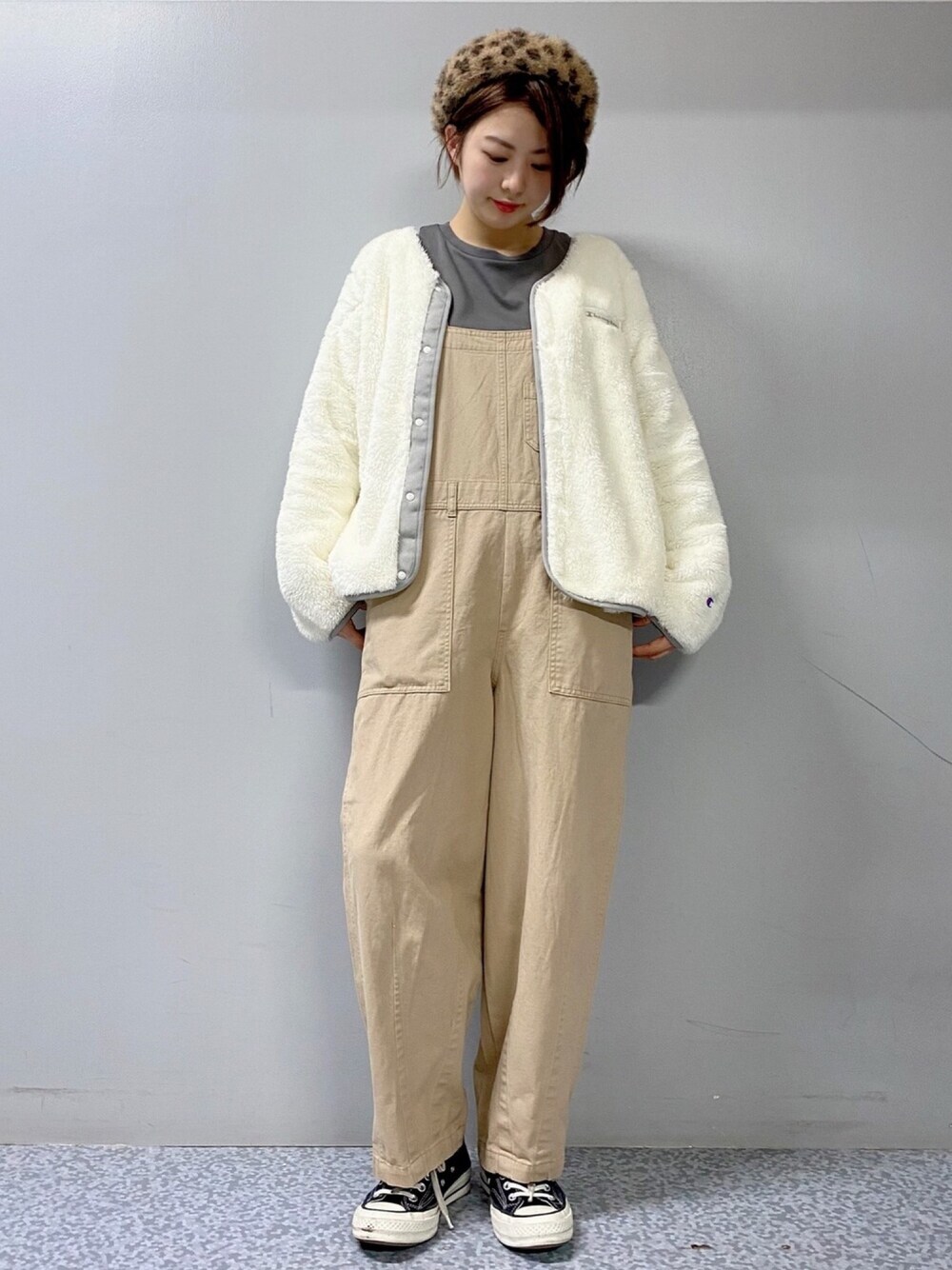 Championシェルパジャケット×オーバーオール ジャケットは普段はMサイズが多いですが 少しゆったりめに着用したかったので Lサイズ着用です ふわふわでやわらかく肌ざわりが気持ちよくてあたたかい一枚となっており気軽に羽織れて、真冬は防寒アウターの下にも着れます🙆♀️ オーバーオールはワンサイズ展開ですが 段階でボタン調整が可能なので、低身長から高身長の方まで着れるアイテム✨