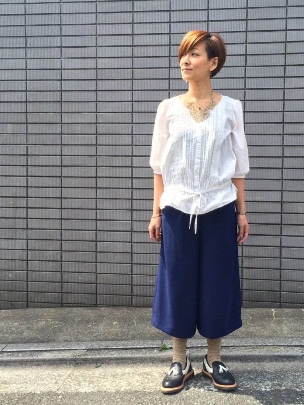春夏カラー70年代を意識して、 赤青黄に注目中(*^^*) 本日はワイドパンツをブルーでチョイス 揺れる感じがお気に入り マーチンのタッセル靴は、見た瞬間即買いしました(^-^)/