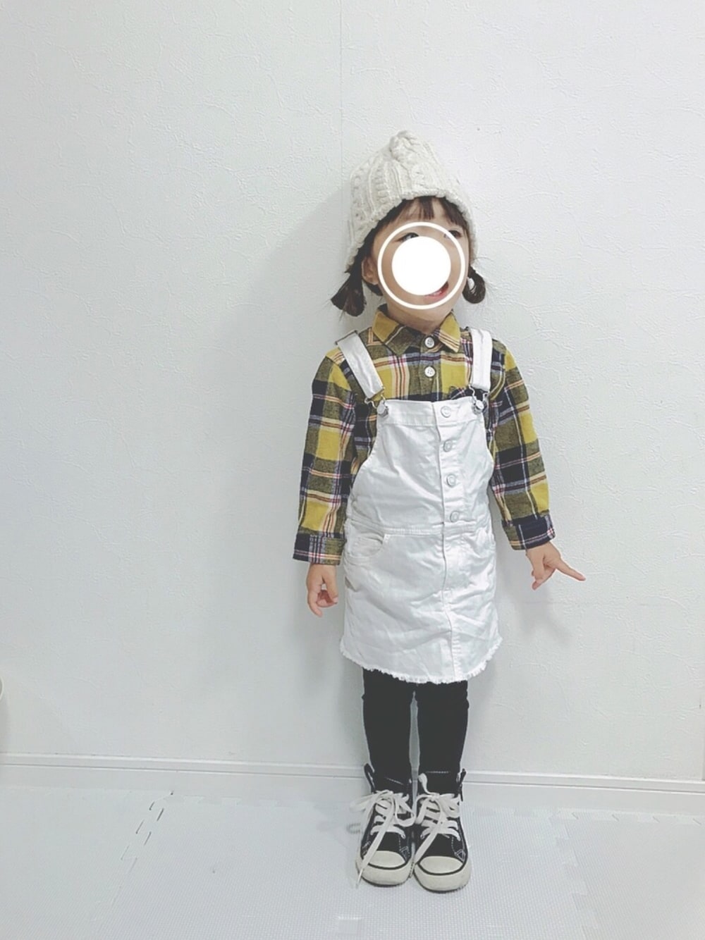 たけのこ派ーーー🙌 お下がりで頂いたサロペ😊 白、可愛い❤️ サイズアウトしたら自分で買うに違いないでしょう✨ ひなこちゃん、主催者さま♡ よろしくお願いします😊