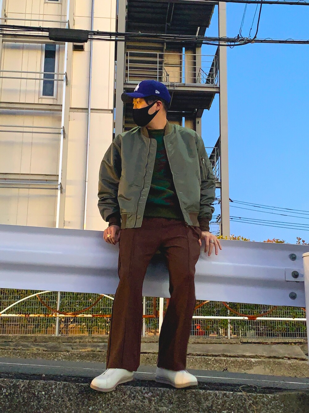 city × military 今トレンドになっているカーキ×ブルーの組み合わせ🌿🫐 キャップのホワイトロゴと810s【KITCHE】で色合わせ❄️迷彩ニットで使われてるブラウンとトラックパンツで色合わせ🏇 キャップ似合わない病が克服しつつある👊