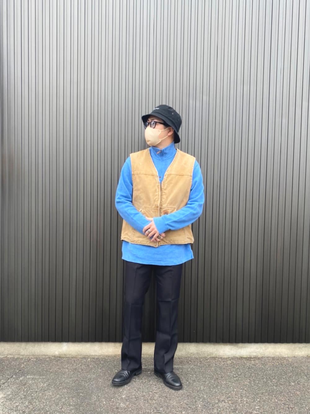 used mix ぱっと見綺麗めなんだけど、どこかこだわりがあるようなused mixを目指しました✨ 春っぽさを一足早く出したくて、poloのライトブルーのハーフジップとつい先ほど購入したカーハートのデニムベスト。どちらもビンテージもので色褪せ感が渋すぎる🍂 パンツはダークブラウンの方がいいかなあ🍫wranglerのブラウンも購入検討せねば😥