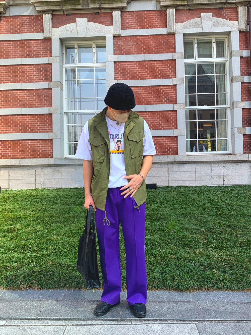 パープル×カーキコーデ🪖🍇 どんだけパープル×カーキ好きなんだって感じですね笑 今年の春夏はベストかなり多用しそうです🦺 Tシャツ一枚でもいいんですけど、なんか寂しくなっちゃうんですよね💦 Tシャツは古着屋で購入したベティちゃんです❤️🔥 こういうちょっとパンチ効いたTシャツ何枚か増やしたいなって思ってます✨